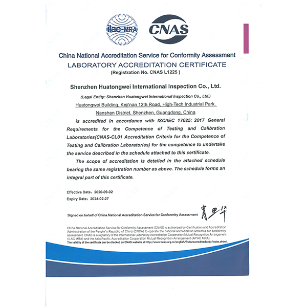 Laboratory CNAS accreditation is an evaluation of the management and technical capabilities of laboratories by CNAS in accordance with prescribed standards. Having the CNAS mark means that the institution has been accredited by the China National Accreditation Service for Conformity Assessment and has the technical capabilities to carry out testing and school-level services in accordance with relevant international accreditation standards.