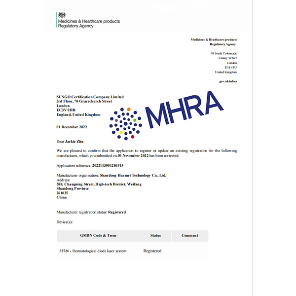 The full name of MHRA is Medicines and Healthcare products Regulatory Agency. MHRA is the government department in charge of medicines and medical devices in the UK. Both pre-market and post-market supervision of medical devices will be supervised by MHRA.