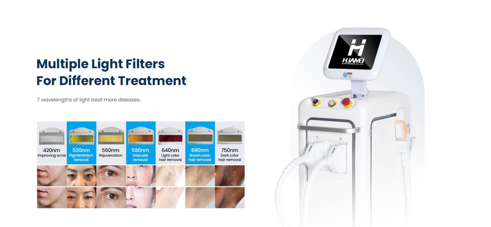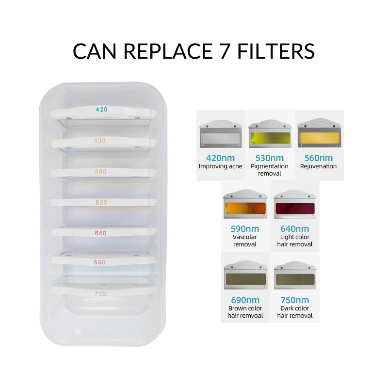 The seven filters provide versatility and precision for various treatments:
