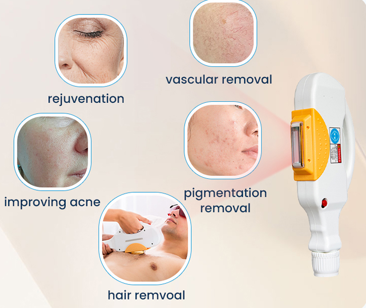 - E-Light Skin Rejuvenation: Improves skin texture, reduces wrinkles, and treats acne.
