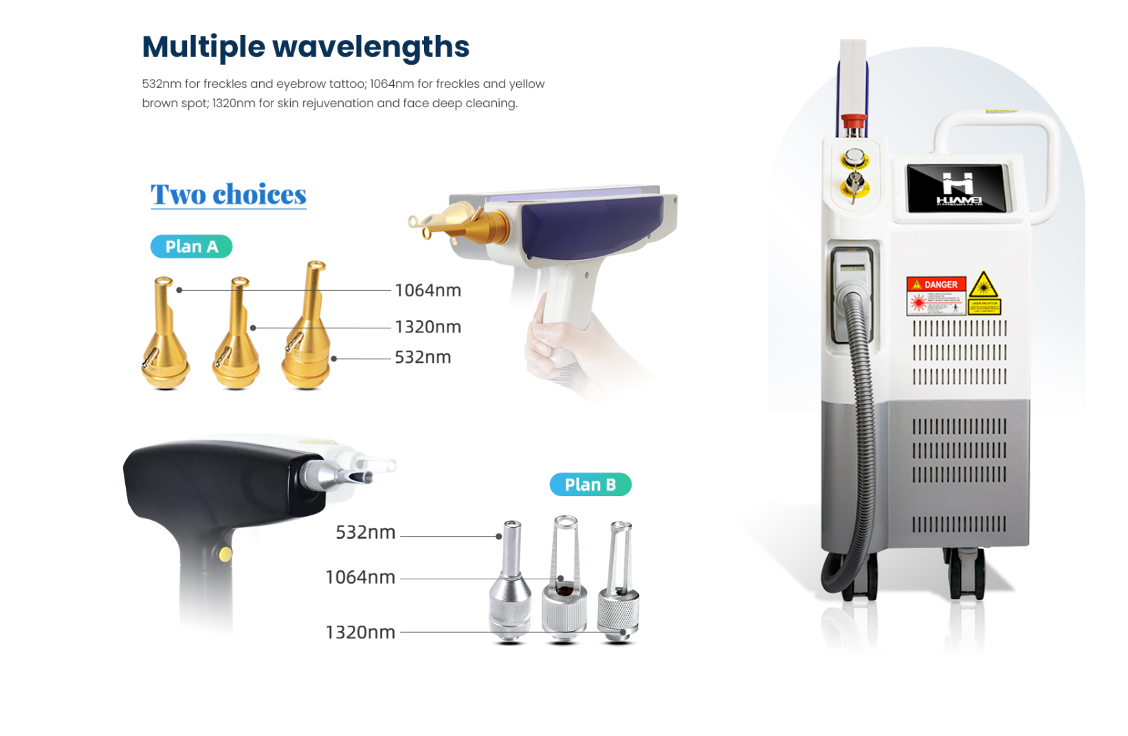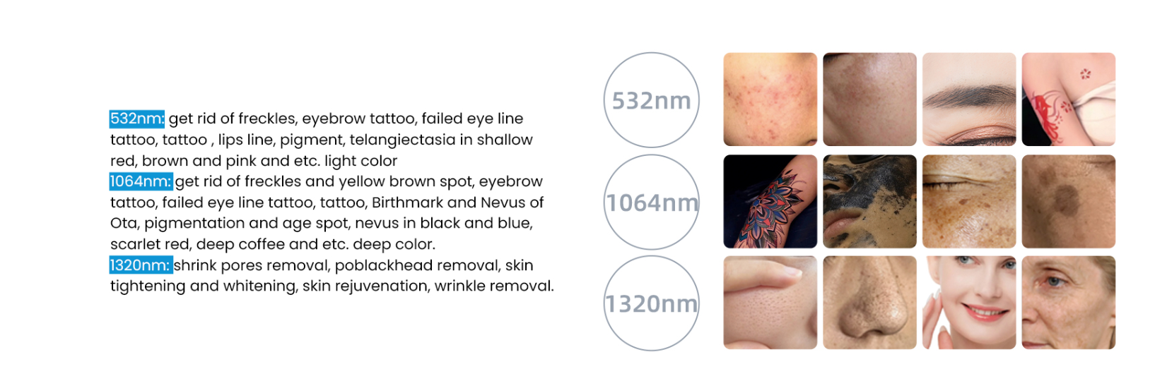 Yes, the machine’s 532nm, 1064nm, and 1320nm wavelengths are specifically designed to target different ink colors. The 532nm wavelength is ideal for red, orange, and yellow inks, while the 1064nm wavelength effectively removes black, blue, and green inks. The 1320nm wavelength is perfect for skin rejuvenation and black carbon peel treatments.